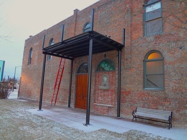 Paul & I sat on our new veranda (away from the edges since we don’t have our railing installed yet!) on the first day of the year. We raised a champagne toast to all our past and future customers & guests who make continuing improvements to our Historic Firehouse No2 possible. This is what the deck looked like under our chairs. Here’s to a great new year and lots of new folks enjoying the fabulous new view from our veranda…can’t wait for spring! Look how beautifully it frames our doorway and fountain!